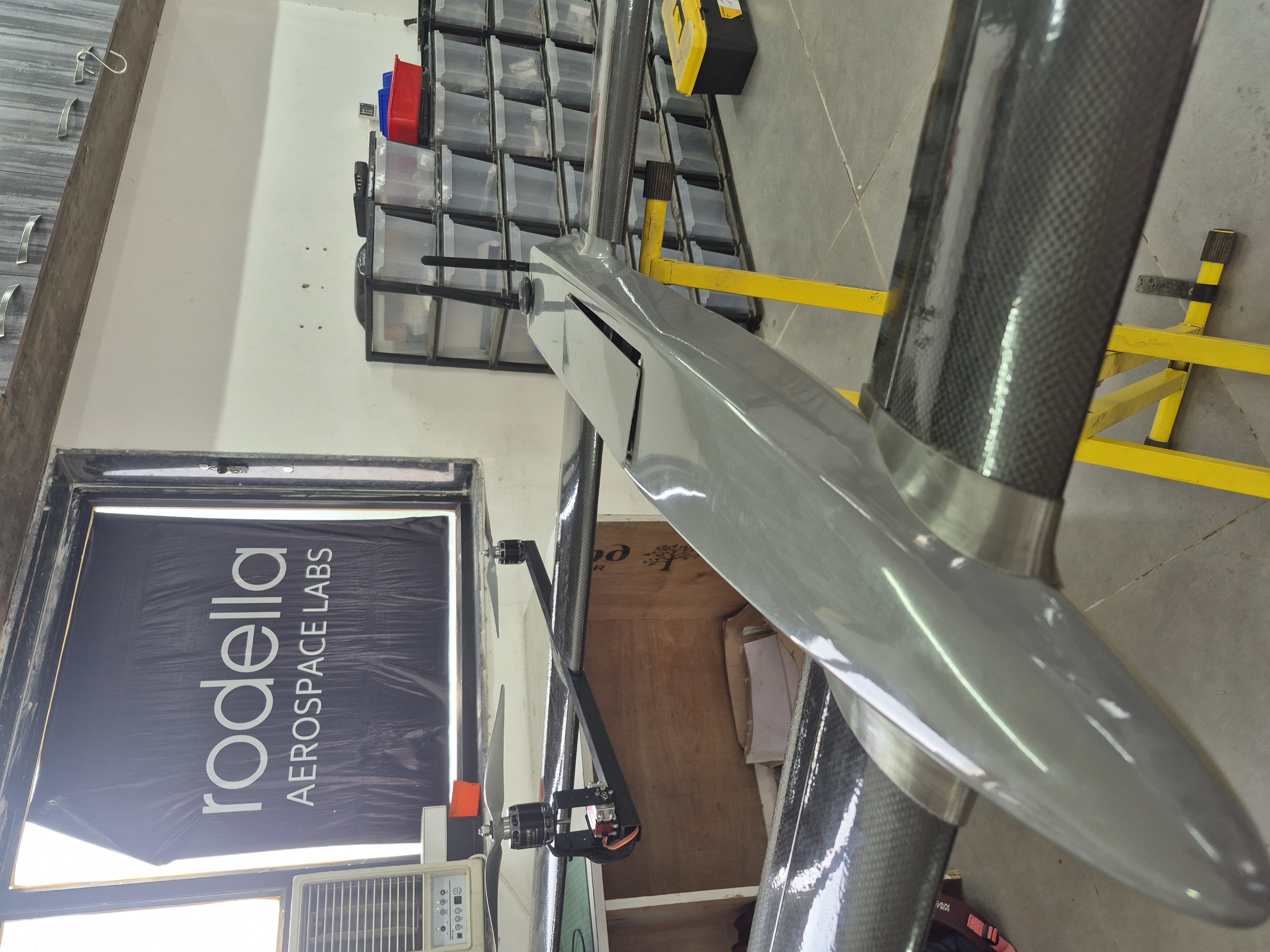 The front two rotors tilt and provide the cruising thrust. This clears the rear of the airframe which would have otherwise housed a pusher rotor. The EO is therefore mounted at the back and the associated drag is nulled out. The two rotors also act as an active yaw control system using differential thrust. This eliminates the vertical stabilizer. All of this saves weight and boy, it does reflect in performance.